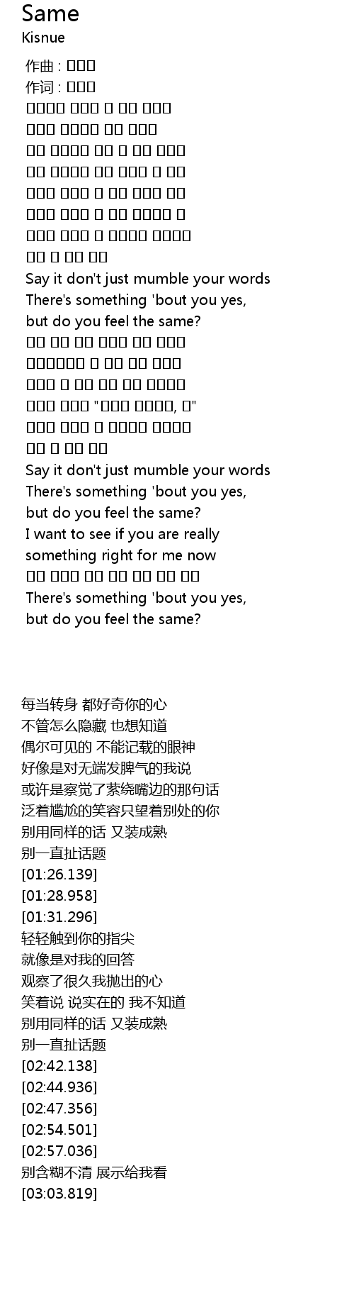 | [02:35.686] | 똑같은 말들로 또 어른스런 척하지마 |