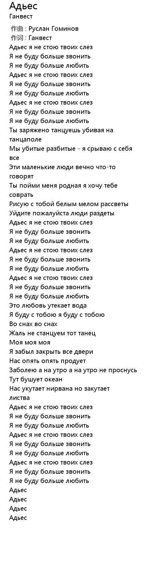 Адьес я не стою твоих слез |