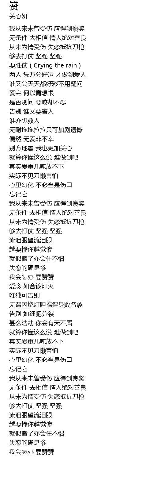 | [00:19.050] | 我从来未曾受伤 应得到褒奖 |