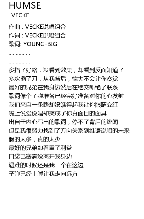| 作词 : VECKE说唱组合 | |