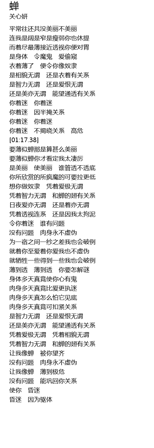 | [03:00.64] | 让我像蝉 薄到极危 |