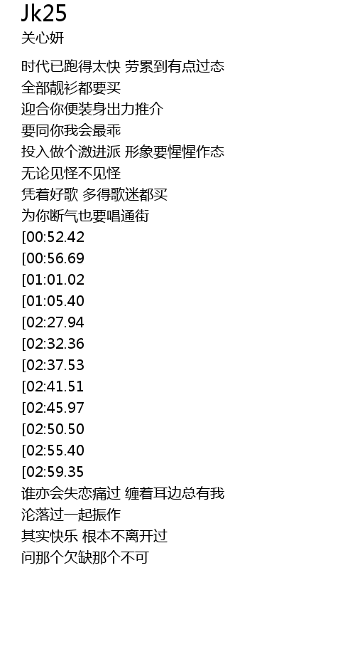 | [02:11.19][00:52.42] | 廿五岁心情战战兢兢 |