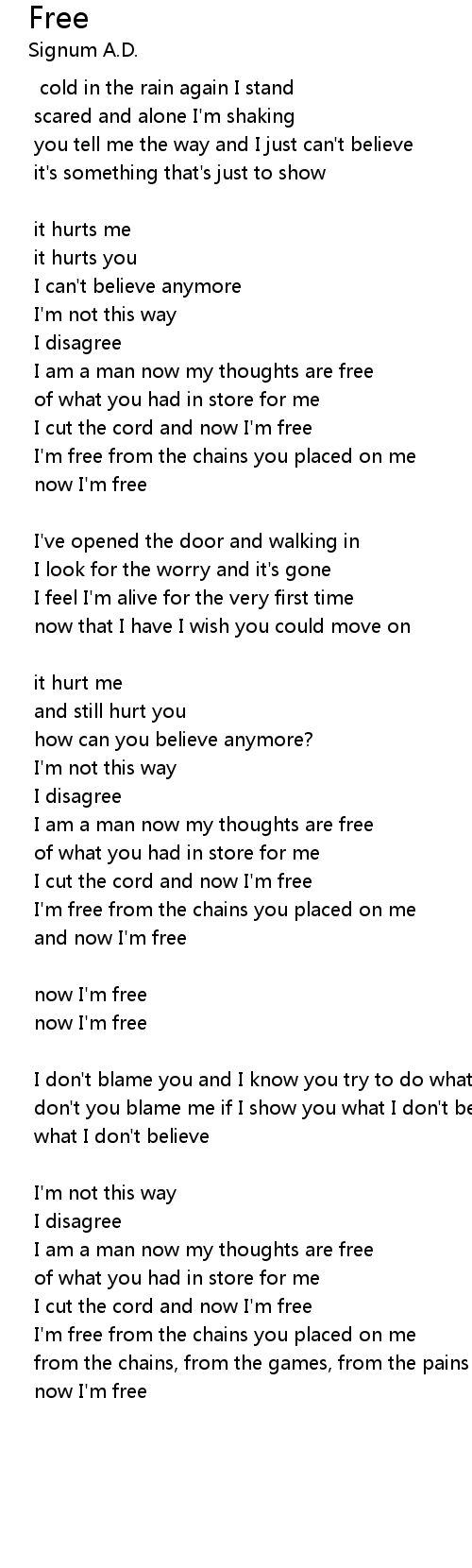 I am a man now my thoughts are free