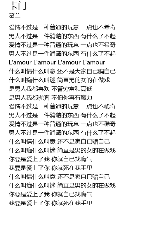 | [00:59.03] | L' amour L' amour L' amour L' amour |
