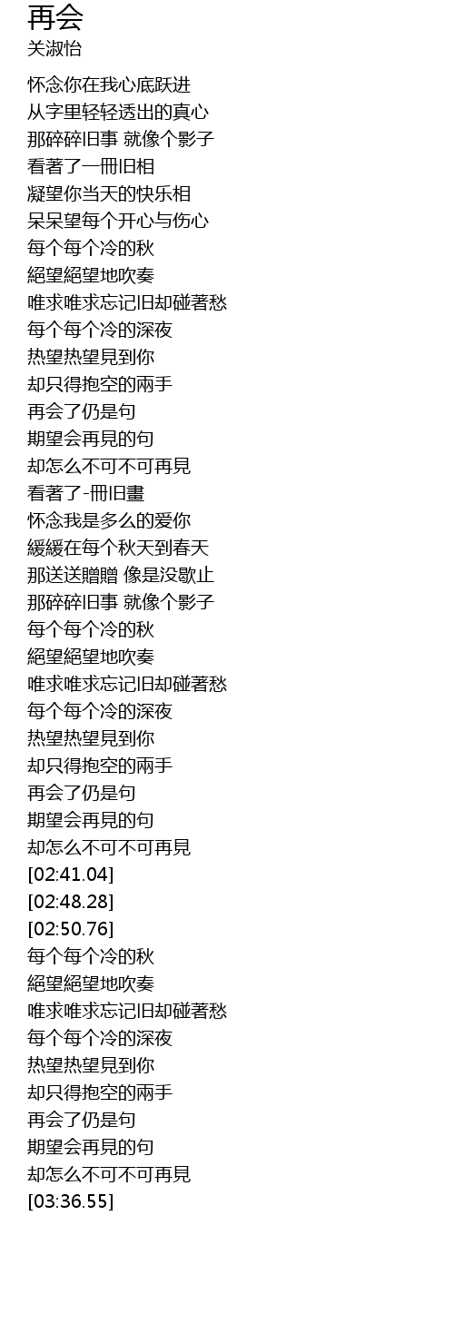 | [02:27.87] | 再会了仍是句 |