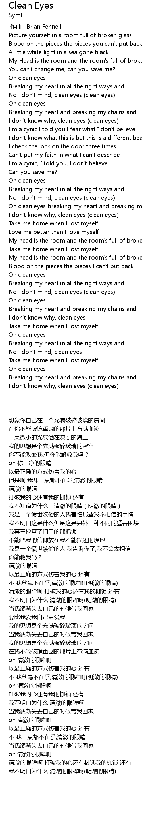 | [01:47.70] | I don' t know why, clean eyes clean eyes |