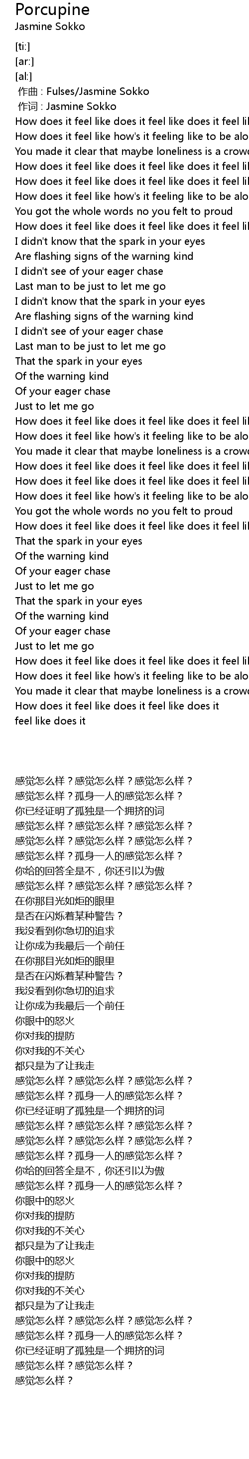 | [00:35.19] | How does it feel like does it feel like does it feel like does it |