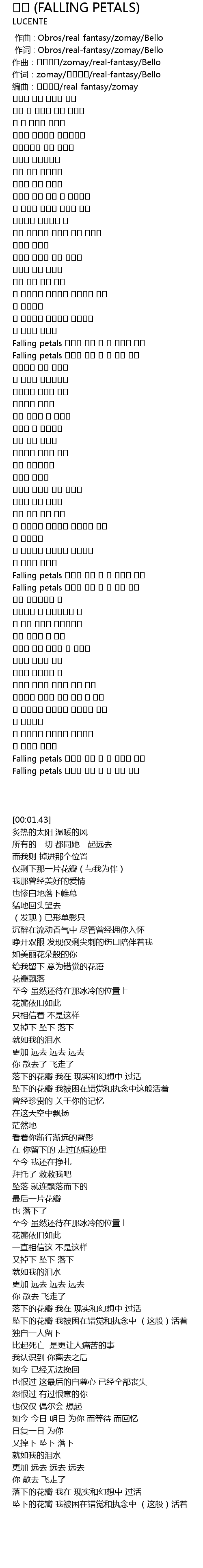 | [00:00.012] | 作词 : Obros/real-fantasy/zomay/Bello |