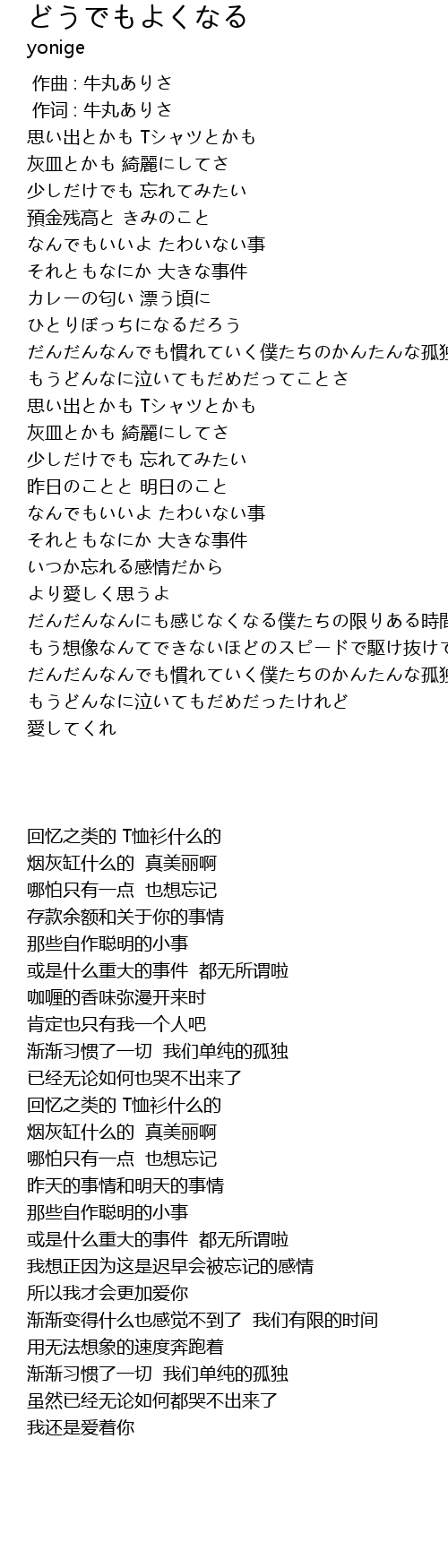 | [00:39.15] | なんでもいいよ たわいない事 |