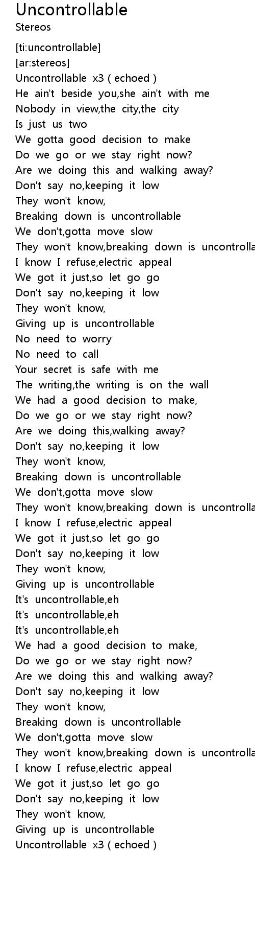 | [00:07.170] | Uncontrollable x3(echoed) |