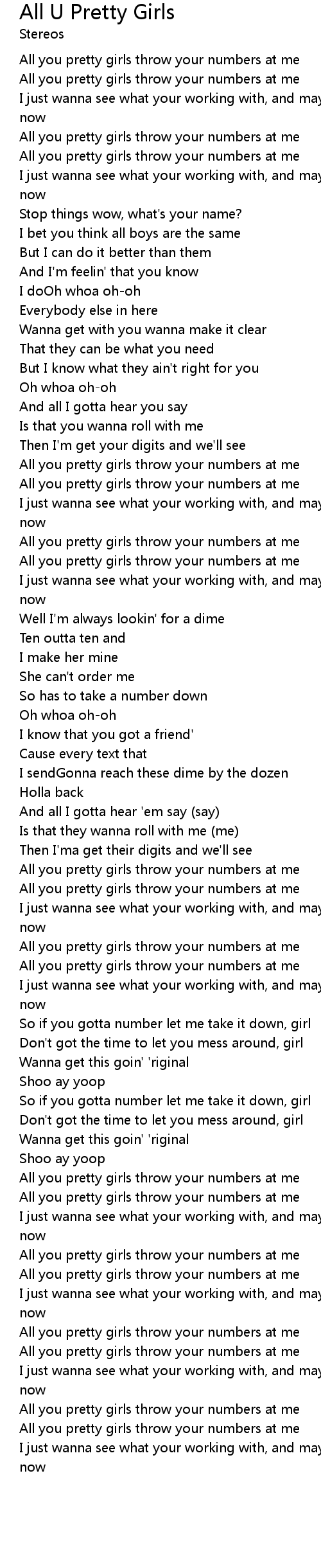 | All you pretty girls throw your numbers at me | |