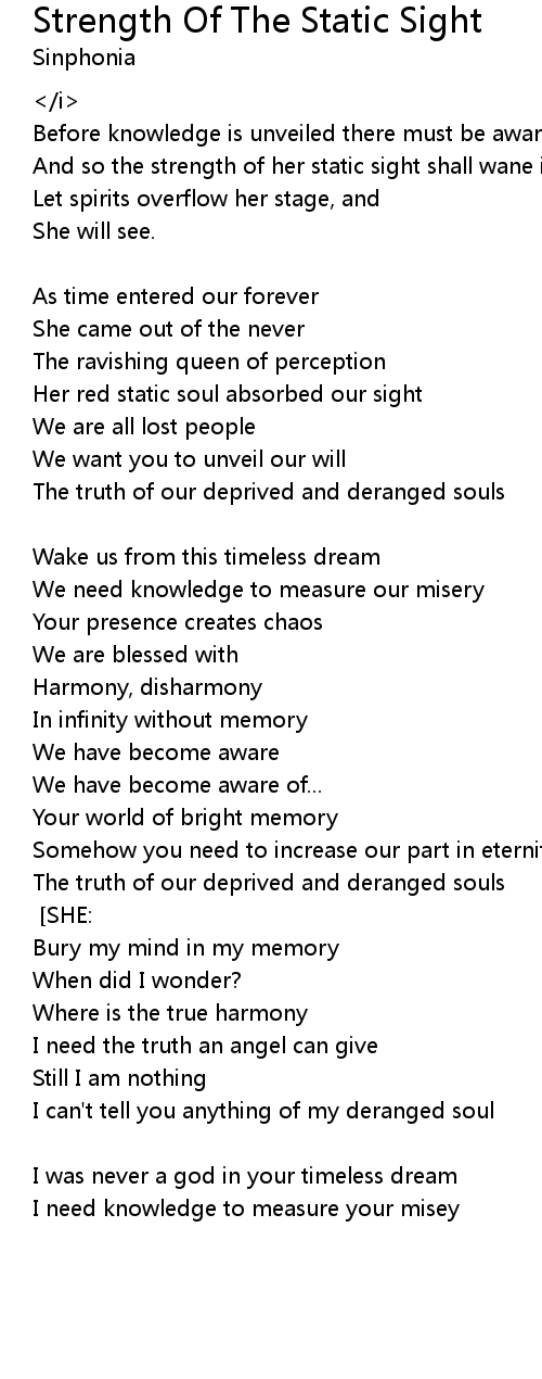 And so the strength of her static sight shall wane in the light of the why. |
