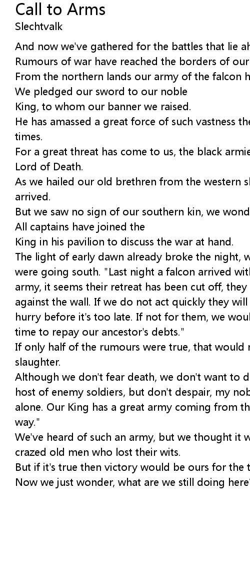 From the northern lands our army of the falcon hailed. |