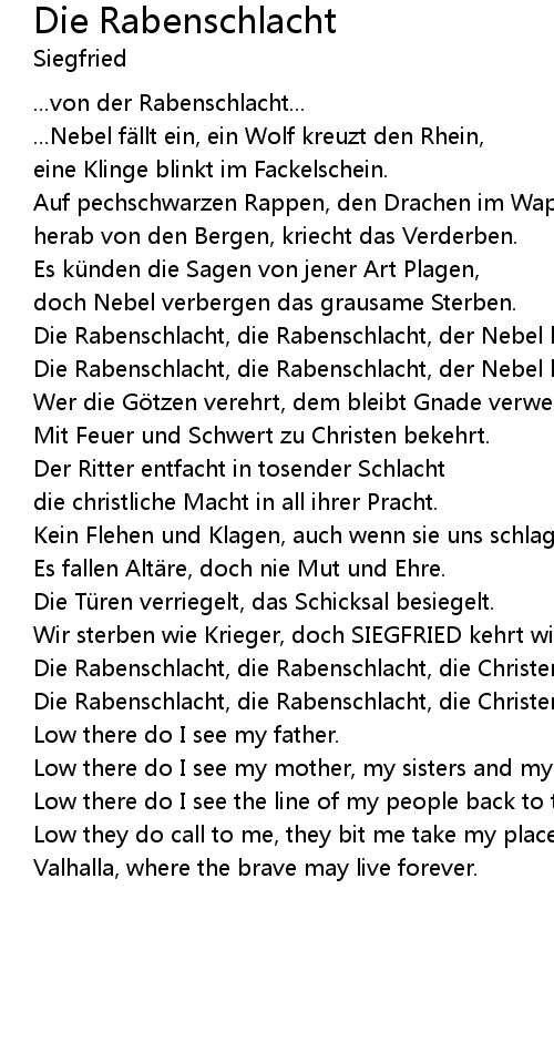 | Die Rabenschlacht, die Rabenschlacht, der Nebel hat den Tod gebracht! | |