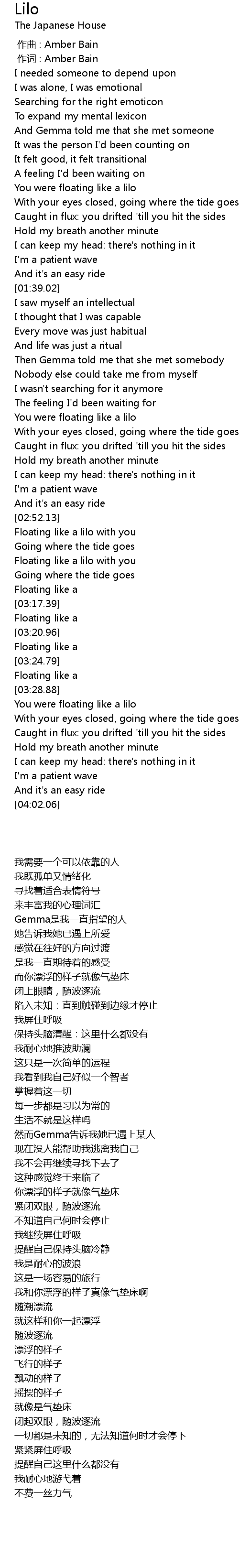 | [02:59.76] | Floating like a lilo with you |