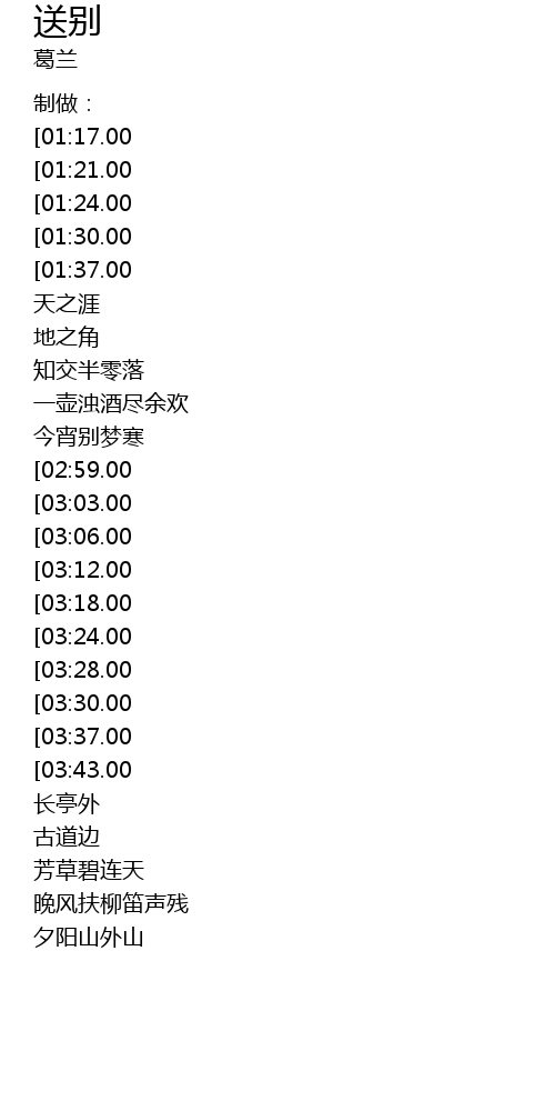 | [02:15.00][03:06.00] | 芳草碧连天 |