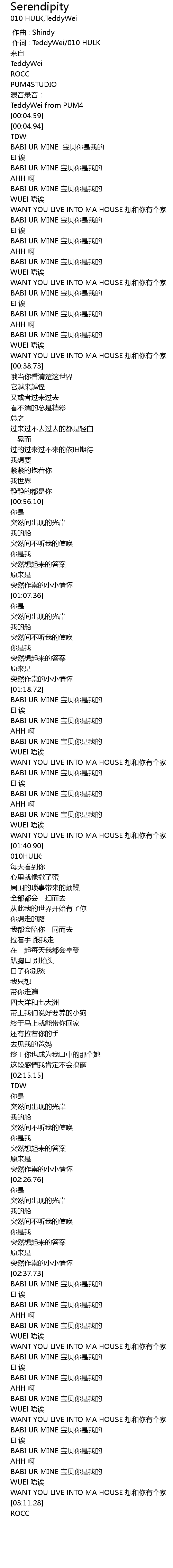 | [02:43.39] | BABI UR MINE bǎo bèi nǐ shì wǒ de |