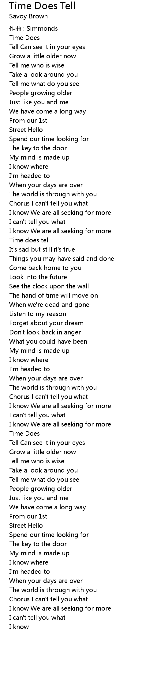 | 歌曲 | Time Does Tell |