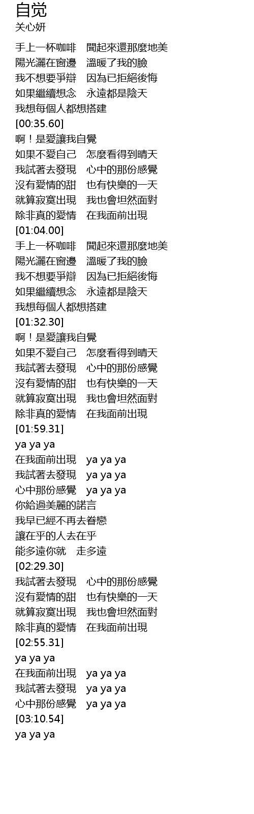 | [01:35.48] | 啊!是愛讓我自覺 |