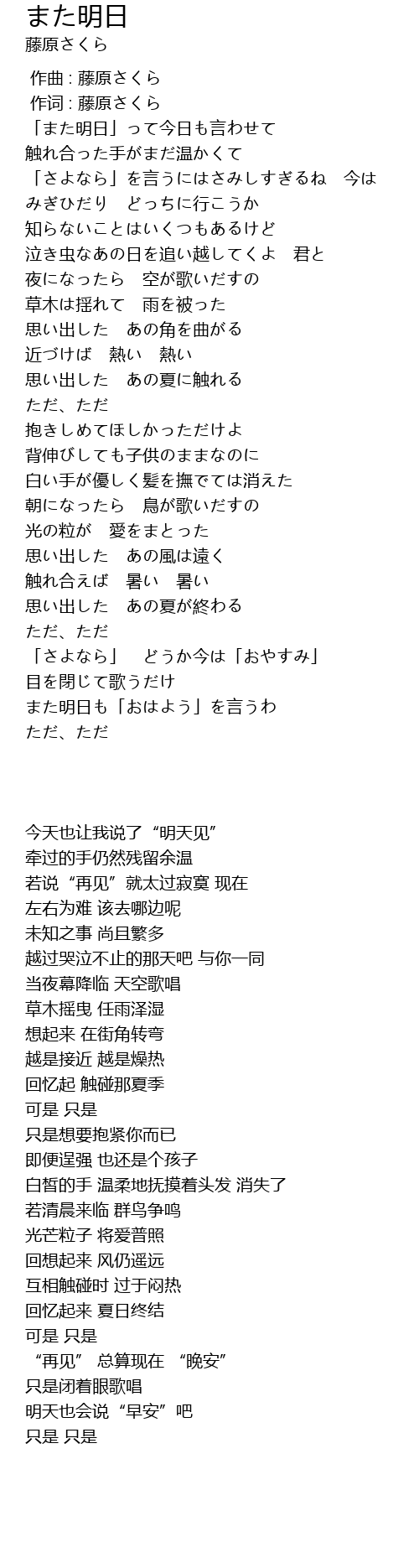 作词 : 藤原さくら |