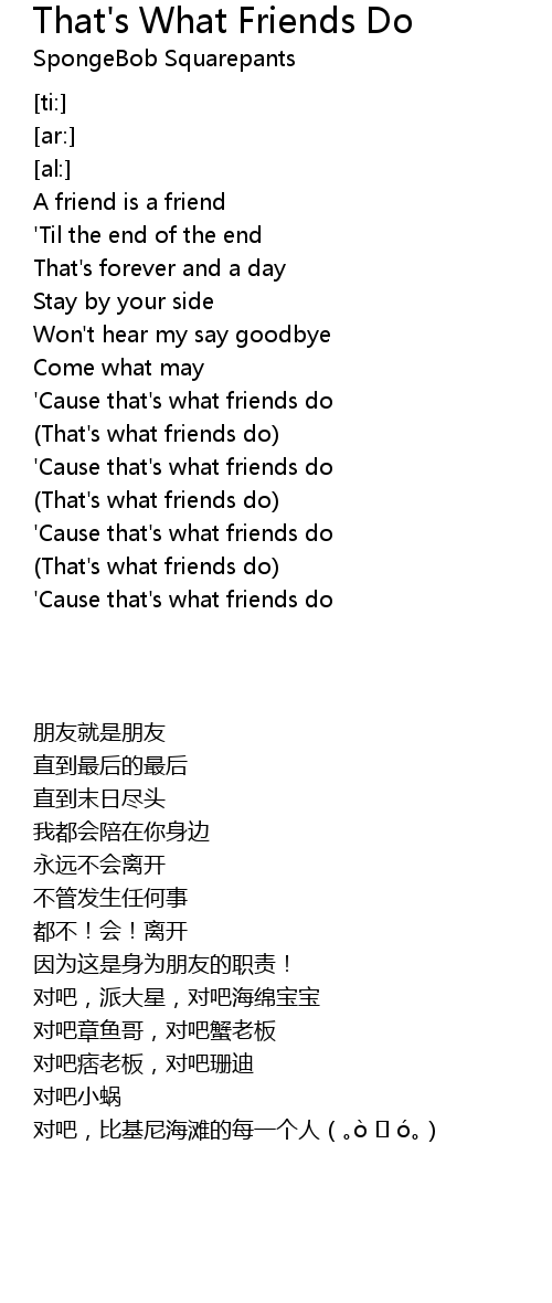 | [00:14.47] | 'Cause that's what friends do |