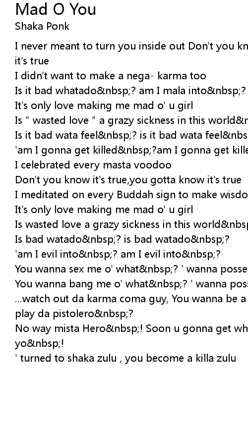 You wanna sex me o' what ? ' wanna possess me of what ? |
