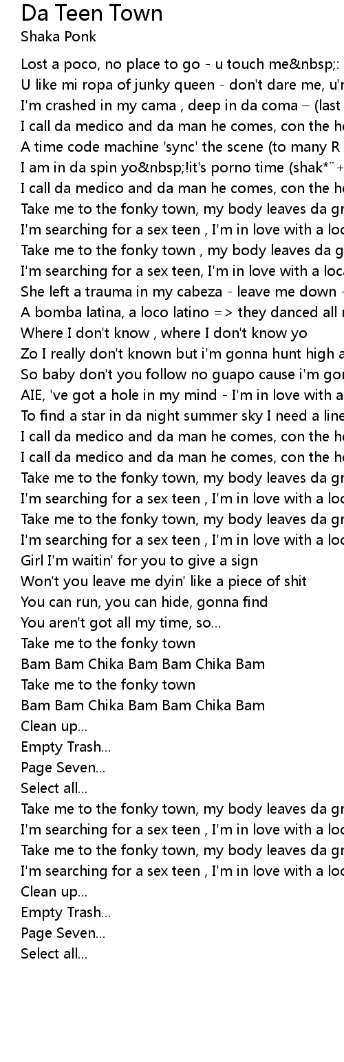 | She left a trauma in my cabeza - leave me down - funky town | |