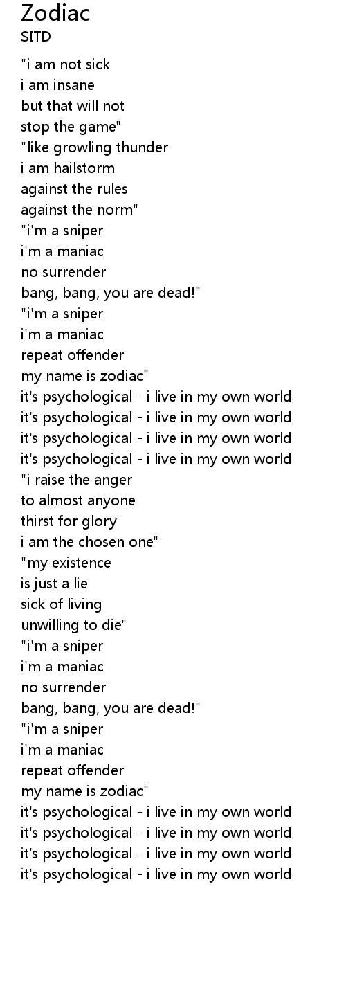 | my name is zodiac" | |