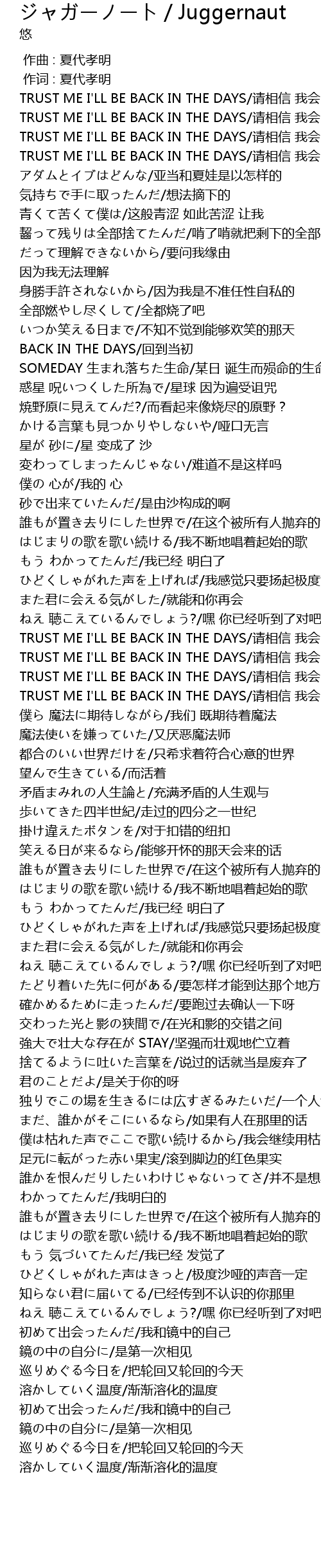 | 歌曲 | ジャガーノート / Juggernaut |