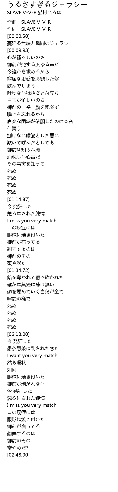 | [00:00.05] | 作词:SLAVE.V-V-R |