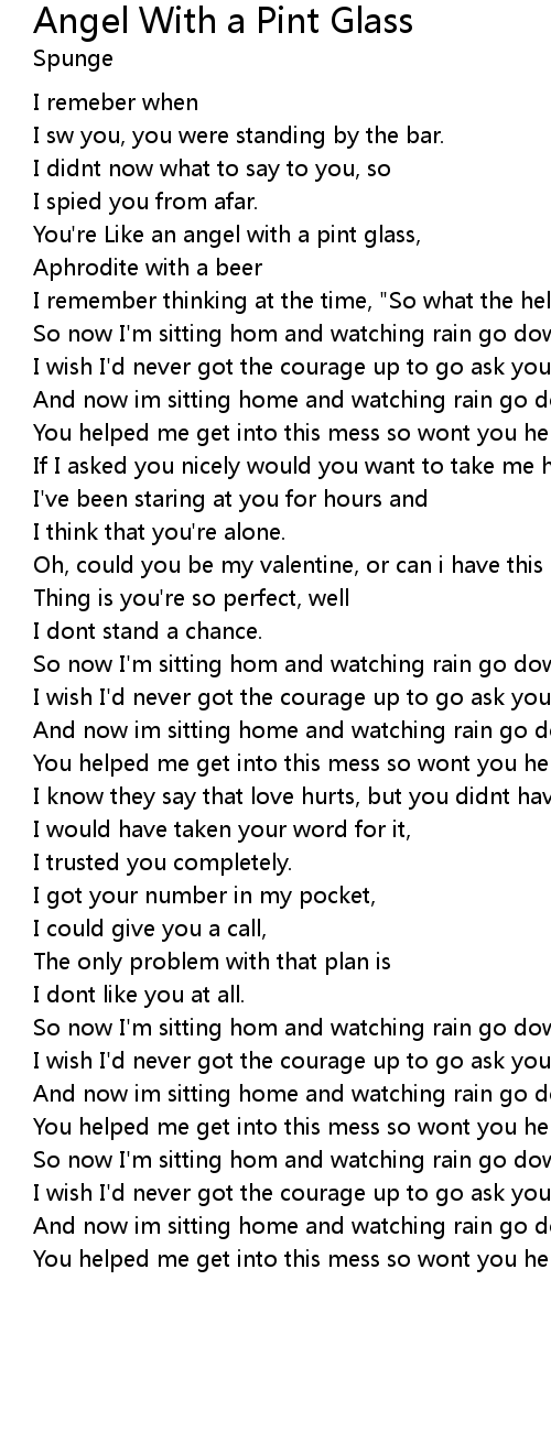 You're Like an angel with a pint glass, |