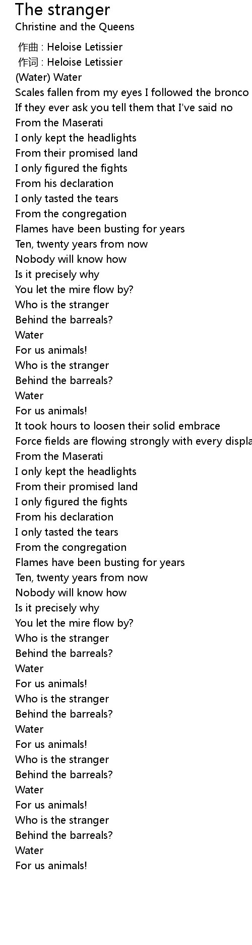 | [03:23.38] | Who is the stranger |