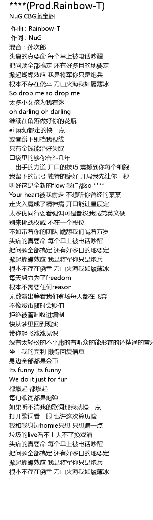| [01:10.36] | 不如带着你的团队 跪舔我们喊着万岁 |