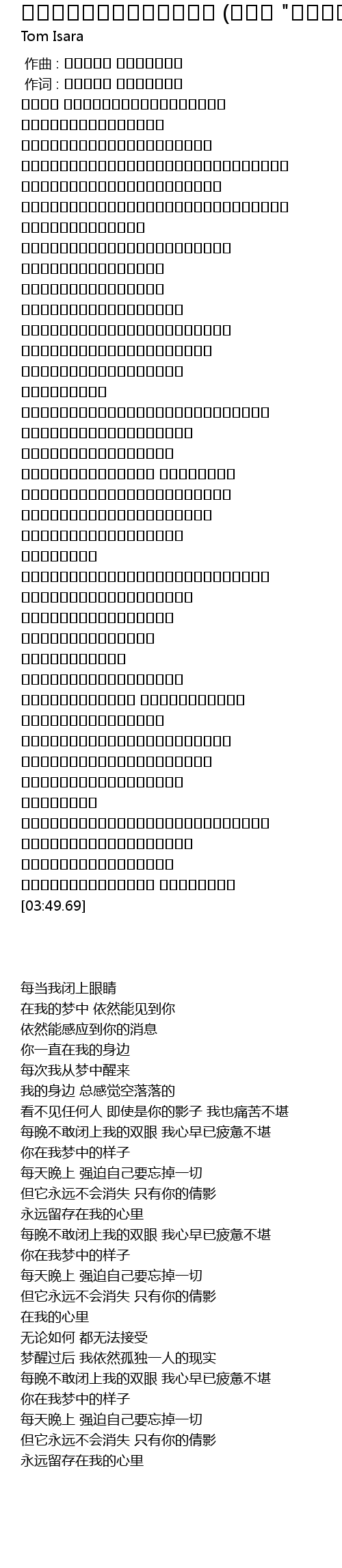 | [03:11.55] | ทุกคืนฉันไม่อยากหลับตา เพราะหัวใจเหนื่อยล้า |