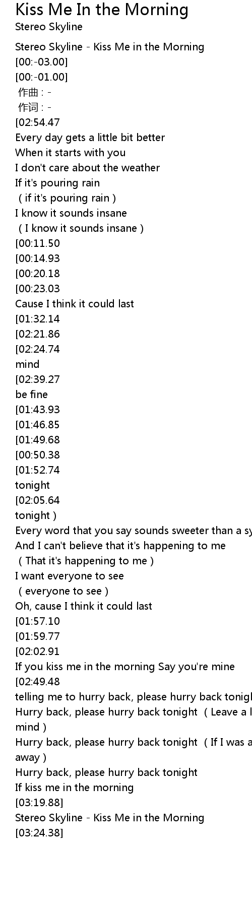 | [03:19.98] | Stereo Skyline Kiss Me in the Morning |