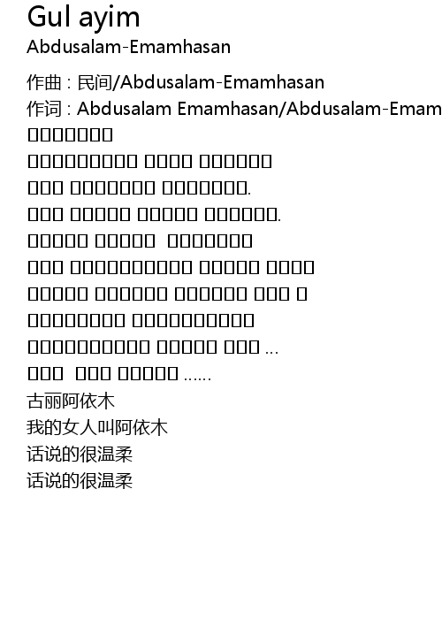 | 作词 : Abdusalam Emamhasan/Abdusalam-Emamhasan | |