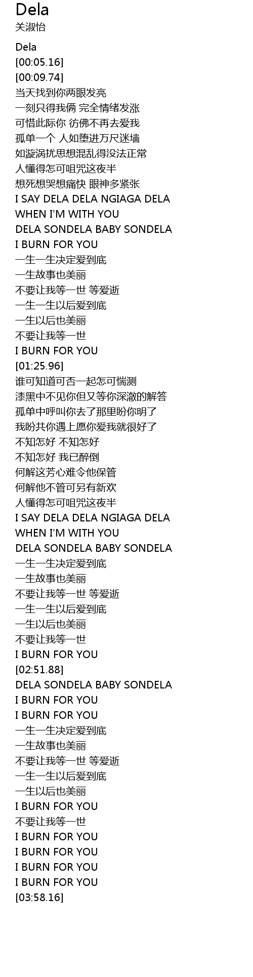 | [00:57.90] | DELA SONDELA BABY SONDELA |