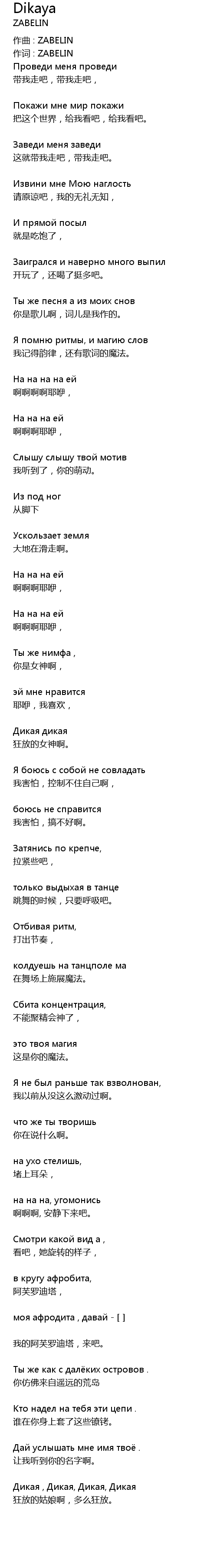| 作词 : ZABELIN | |