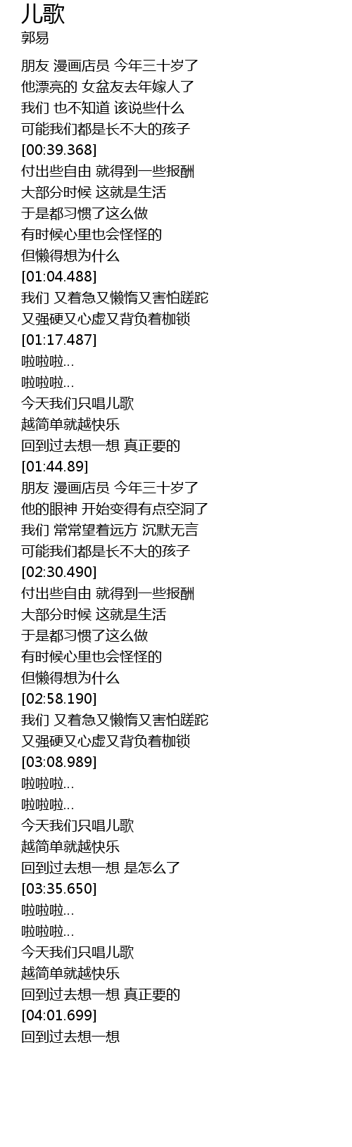| [03:48.400] | 今天我们只唱儿歌 |