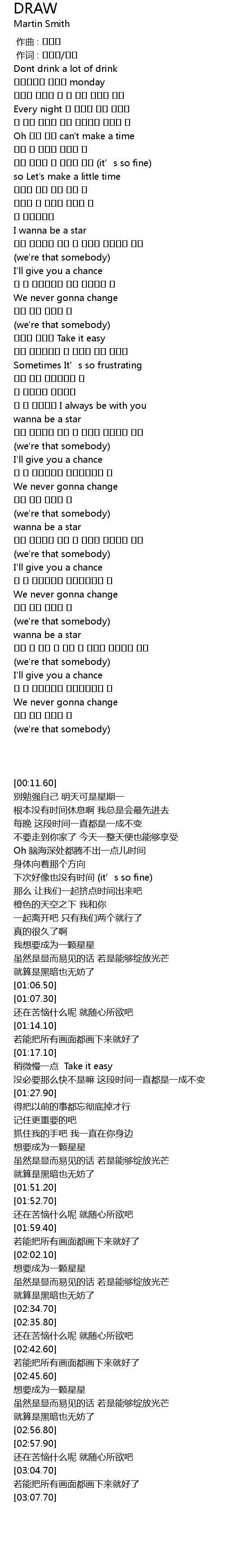| [01:18.20] | 稍微慢一点 Take it easy |