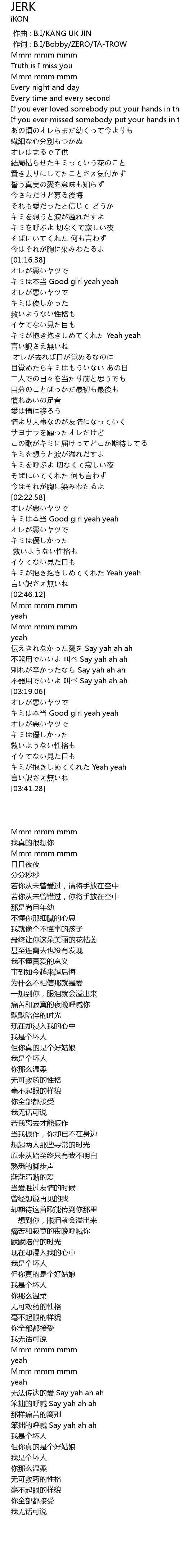 | [00:01.000] | 作词 : B.I/Bobby/ZERO/TA-TROW |