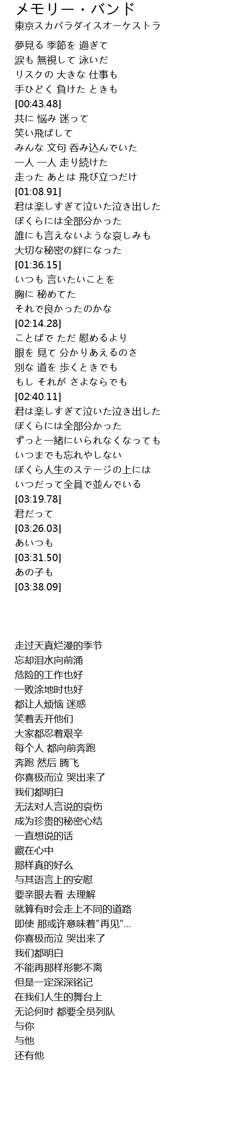 | 歌曲 | メモリー・バンド |