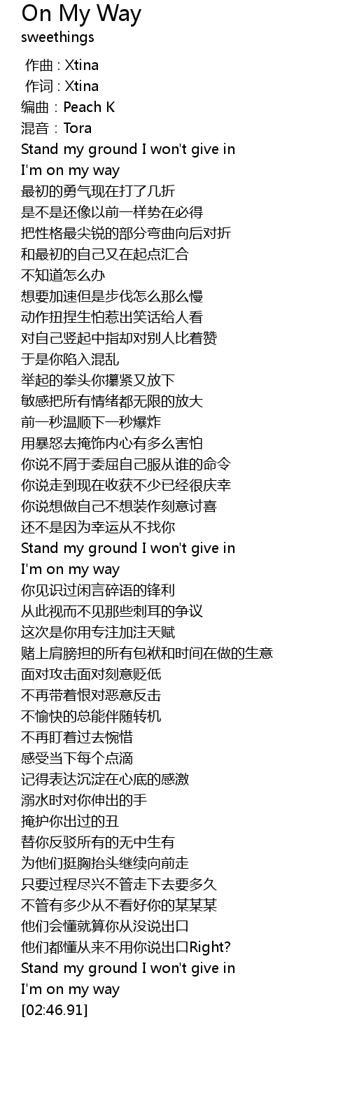 | [02:10.28] | 为他们挺胸抬头继续向前走 |