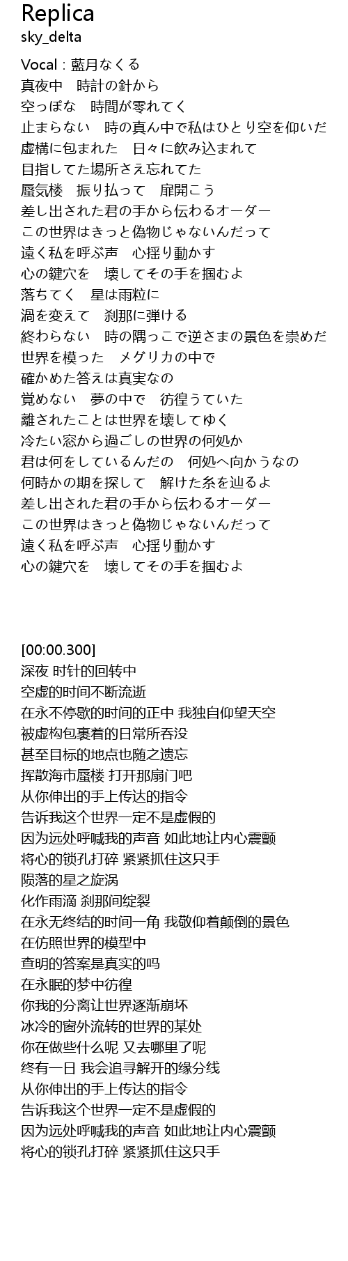 | [01:07.174] | この世界はきっと偽物じゃないんだって |