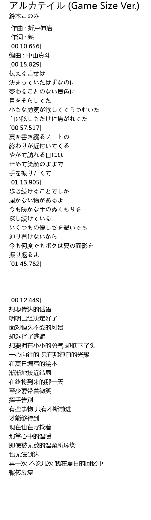 | [00:12.449] | 编曲 : 中山真斗 |