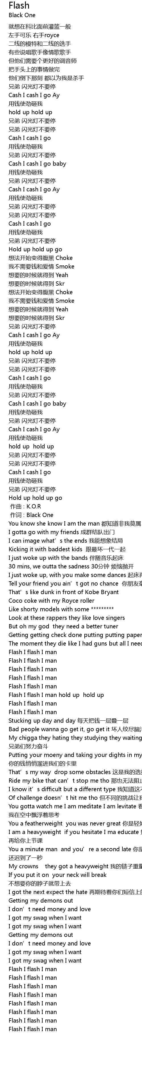 | [01:04.490] | Flash I flash I man hold up hold up |