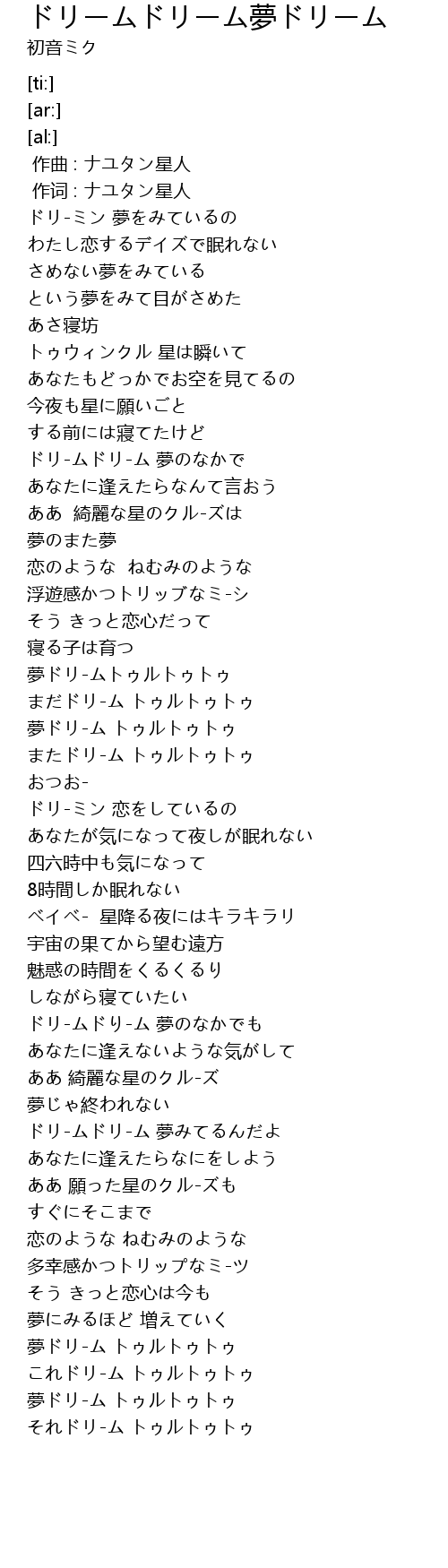 | [02:57.05] | 夢ドリ-ム トゥルトゥトゥ |