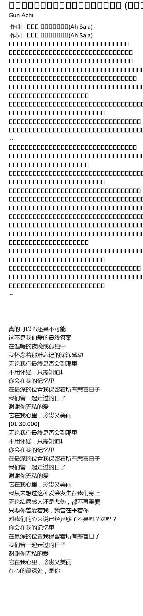 | [03:27.470] | เป็นสิ่งที่มีค่าเเละสวยงามมากมายกับใจดวงนี้ |