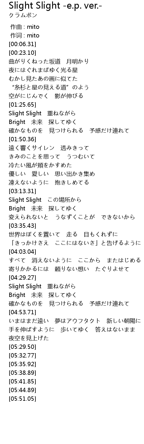 | [04:06.79] | すべて 消えないように ここから またはじめる |