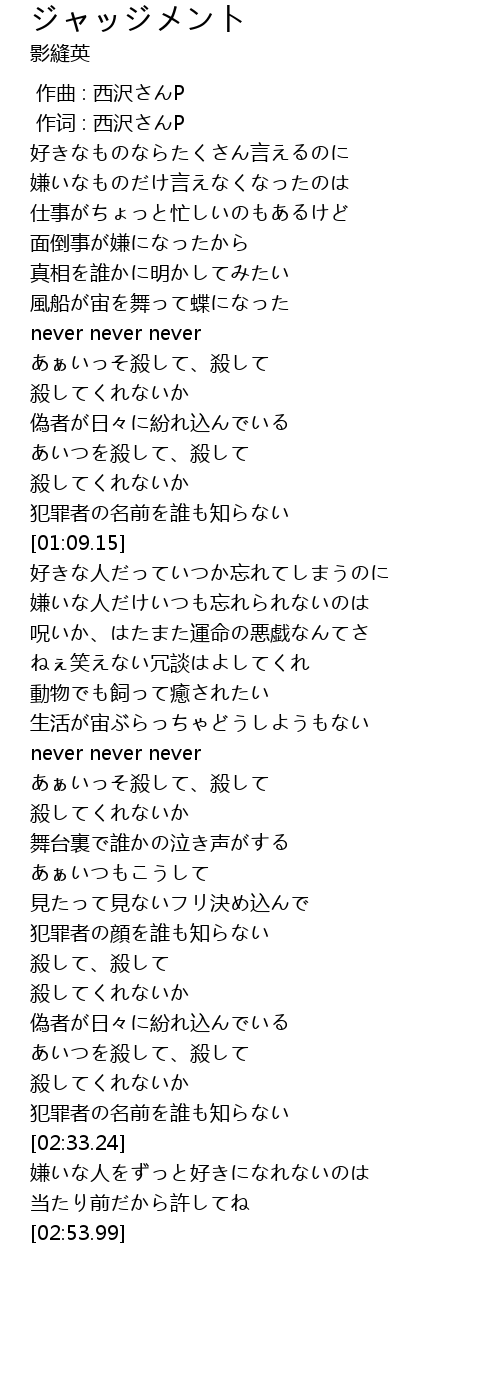 | [00:01.000] | 作词 : 西沢さんP |